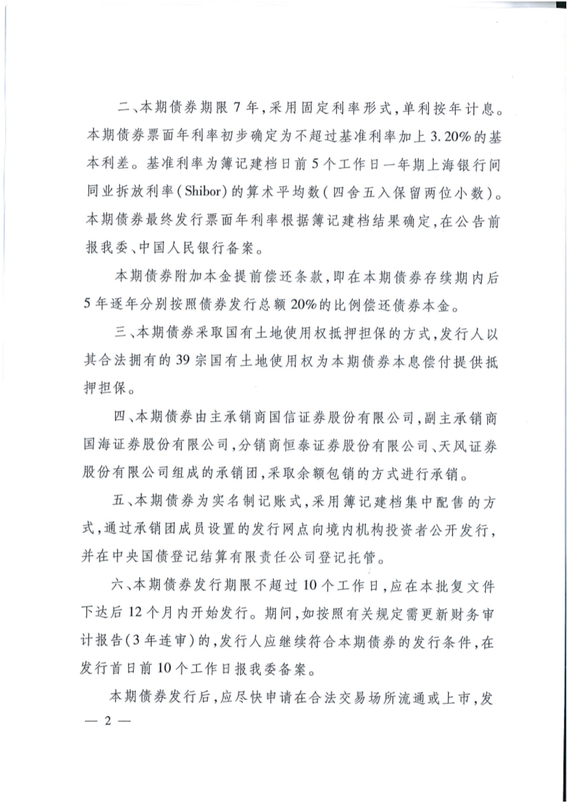 國家發改委批復同意河池市城投公司發行一期債券